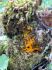 Man pēkšņi radās ideja - vai tur bija nu ļoti mitrs mikroklimats, egle ar melnalksni? Hipotētiski tādas dzeltenas var būt Diachea muscorum. Te bilde ir mazliet līdzīga: https://fr.wikipedia.org/wiki/Fichier:Craterium_muscorum,_Trawscoed,_North_Wales,_Aug_2016_-_Flickr_-_janetgraham84.jpg