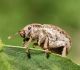 Jāredz tuvāk (kaut vai izkadrēts šis pats attēls) - varbūt tumšā eļļasvabole (Meloe proscarabaeus)