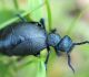 Jāredz tuvāk (kaut vai izkadrēts šis pats attēls) - varbūt tumšā eļļasvabole (Meloe proscarabaeus)