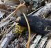 Satrūdējusi kritala mežā, nav dēļi. Iespējams, egle, jauktu koku mežs.