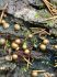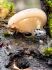 Man pēkšņi radās ideja - vai tur bija nu ļoti mitrs mikroklimats, egle ar melnalksni? Hipotētiski tādas dzeltenas var būt Diachea muscorum. Te bilde ir mazliet līdzīga: https://fr.wikipedia.org/wiki/Fichier:Craterium_muscorum,_Trawscoed,_North_Wales,_Aug_2016_-_Flickr_-_janetgraham84.jpg