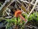 Man pēkšņi radās ideja - vai tur bija nu ļoti mitrs mikroklimats, egle ar melnalksni? Hipotētiski tādas dzeltenas var būt Diachea muscorum. Te bilde ir mazliet līdzīga: https://fr.wikipedia.org/wiki/Fichier:Craterium_muscorum,_Trawscoed,_North_Wales,_Aug_2016_-_Flickr_-_janetgraham84.jpg