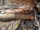 Satrūdējusi kritala mežā, nav dēļi. Iespējams, egle, jauktu koku mežs.