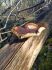Satrūdējusi kritala mežā, nav dēļi. Iespējams, egle, jauktu koku mežs.