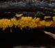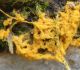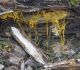 Man pēkšņi radās ideja - vai tur bija nu ļoti mitrs mikroklimats, egle ar melnalksni? Hipotētiski tādas dzeltenas var būt Diachea muscorum. Te bilde ir mazliet līdzīga: https://fr.wikipedia.org/wiki/Fichier:Craterium_muscorum,_Trawscoed,_North_Wales,_Aug_2016_-_Flickr_-_janetgraham84.jpg
