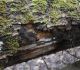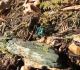 Satrūdējusi kritala mežā, nav dēļi. Iespējams, egle, jauktu koku mežs.