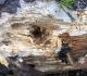 Satrūdējusi kritala mežā, nav dēļi. Iespējams, egle, jauktu koku mežs.