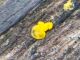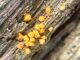 Man pēkšņi radās ideja - vai tur bija nu ļoti mitrs mikroklimats, egle ar melnalksni? Hipotētiski tādas dzeltenas var būt Diachea muscorum. Te bilde ir mazliet līdzīga: https://fr.wikipedia.org/wiki/Fichier:Craterium_muscorum,_Trawscoed,_North_Wales,_Aug_2016_-_Flickr_-_janetgraham84.jpg