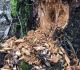 Satrūdējusi kritala mežā, nav dēļi. Iespējams, egle, jauktu koku mežs.