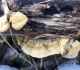 Satrūdējusi kritala mežā, nav dēļi. Iespējams, egle, jauktu koku mežs.