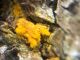 Man pēkšņi radās ideja - vai tur bija nu ļoti mitrs mikroklimats, egle ar melnalksni? Hipotētiski tādas dzeltenas var būt Diachea muscorum. Te bilde ir mazliet līdzīga: https://fr.wikipedia.org/wiki/Fichier:Craterium_muscorum,_Trawscoed,_North_Wales,_Aug_2016_-_Flickr_-_janetgraham84.jpg