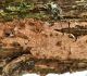 Satrūdējusi kritala mežā, nav dēļi. Iespējams, egle, jauktu koku mežs.