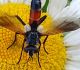 Jāredz tuvāk (kaut vai izkadrēts šis pats attēls) - varbūt tumšā eļļasvabole (Meloe proscarabaeus)