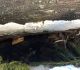 Satrūdējusi kritala mežā, nav dēļi. Iespējams, egle, jauktu koku mežs.