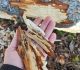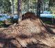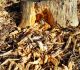 Satrūdējusi kritala mežā, nav dēļi. Iespējams, egle, jauktu koku mežs.