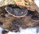 Satrūdējusi kritala mežā, nav dēļi. Iespējams, egle, jauktu koku mežs.