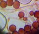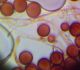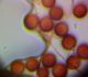 Un ja ir Badhamia, tad vajag arī uz stikliņa bez virsstikliņa mazos palielinājumos (lai nesaslapina okulāru) paskatīties, vai sporas negrupējas, pa divi vai vairāk. Te sporas izskatās ļoti apaļas, drīzāk negrupējas, bet paskatīties tāpat ir vērts.