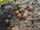 Ja uz beigta koka, tad ticamākā laikam ir B.affinis var. microspora, lai gan tā aug uz mizas. Bet varbūt tieši apakšā gļotsēnēm ir kādi mizas fragmentiņi?