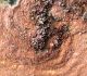 Ja uz beigta koka, tad ticamākā laikam ir B.affinis var. microspora, lai gan tā aug uz mizas. Bet varbūt tieši apakšā gļotsēnēm ir kādi mizas fragmentiņi?