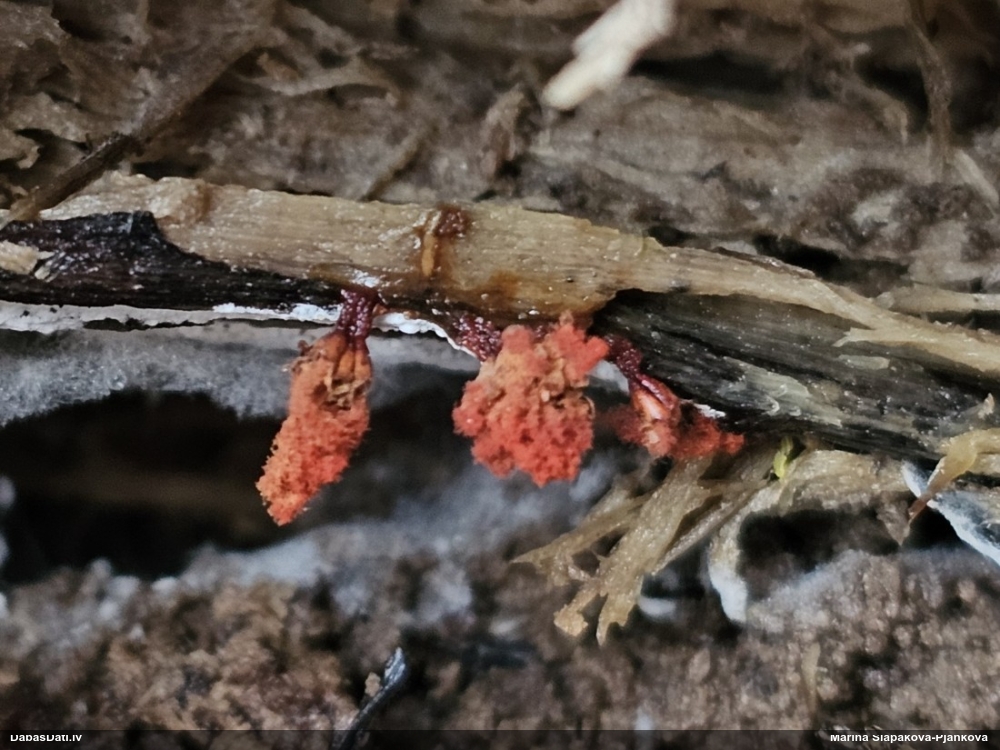 Nu vai tad šis nav Sorocybe resinae micēlijs, uz kura mēdz augt gļotsēne?