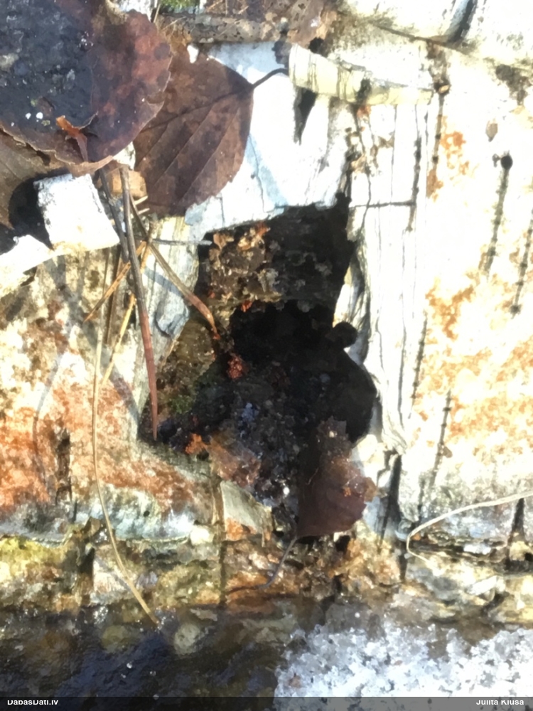 Mežiņā pie mājām, kļavā ieurbtā caurumā (sulām).
