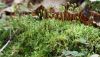 Man pēkšņi radās ideja - vai tur bija nu ļoti mitrs mikroklimats, egle ar melnalksni? Hipotētiski tādas dzeltenas var būt Diachea muscorum. Te bilde ir mazliet līdzīga: https://fr.wikipedia.org/wiki/Fichier:Craterium_muscorum,_Trawscoed,_North_Wales,_Aug_2016_-_Flickr_-_janetgraham84.jpg