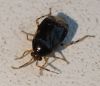 Jāredz tuvāk (kaut vai izkadrēts šis pats attēls) - varbūt tumšā eļļasvabole (Meloe proscarabaeus)