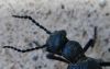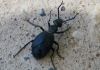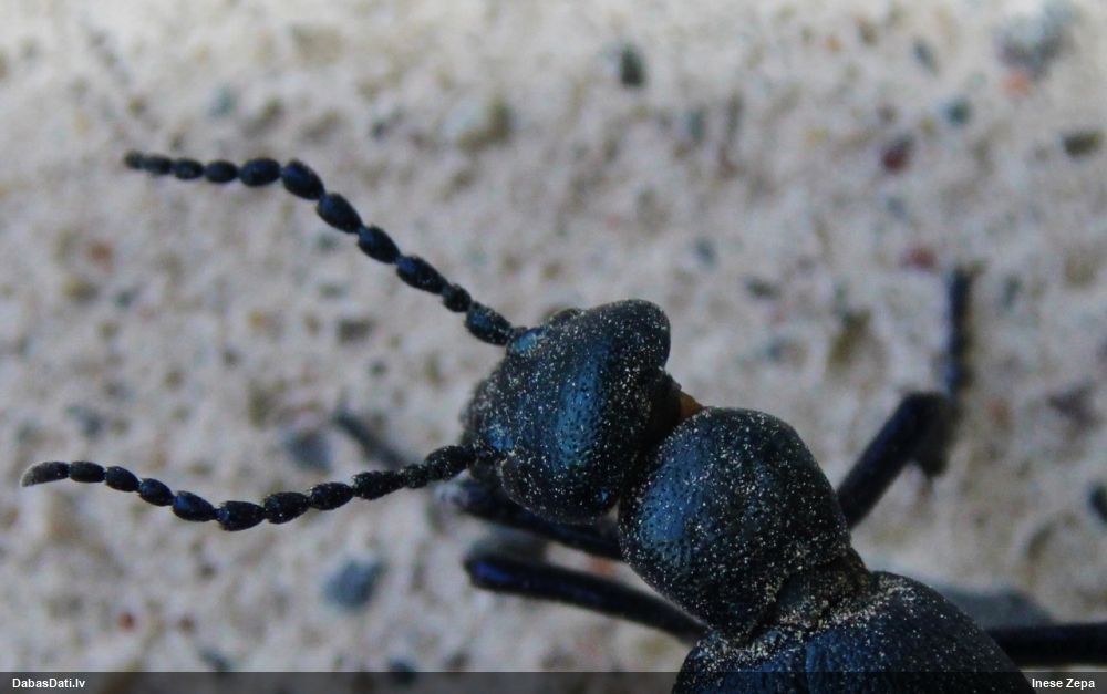 Jāredz tuvāk (kaut vai izkadrēts šis pats attēls) - varbūt tumšā eļļasvabole (Meloe proscarabaeus)