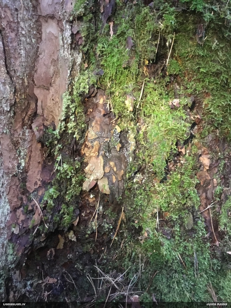 Konkrētā egle vēl joprojām vilka dzīvību, lai gan rētas bija ekstensīvas un noklāja visu stumbru vismaz līdz 2,5m H. Piekrītu, ka aprakstos minētas dzīvu egļu sveķainas rētas, lai gan raksturīgais melnais micēlija tīklojums novērojams arī uz nokaltušiem stumbriem, kamēr vien ir atbilstoši apstākļi tā eksistencei.. Joprojām neesmu atmetis entuziasmu atrast vēl kādu sugas atradni, tuvākajās dienās tiks apsekoti kārtējie biotopi.