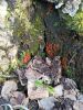 Man pēkšņi radās ideja - vai tur bija nu ļoti mitrs mikroklimats, egle ar melnalksni? Hipotētiski tādas dzeltenas var būt Diachea muscorum. Te bilde ir mazliet līdzīga: https://fr.wikipedia.org/wiki/Fichier:Craterium_muscorum,_Trawscoed,_North_Wales,_Aug_2016_-_Flickr_-_janetgraham84.jpg