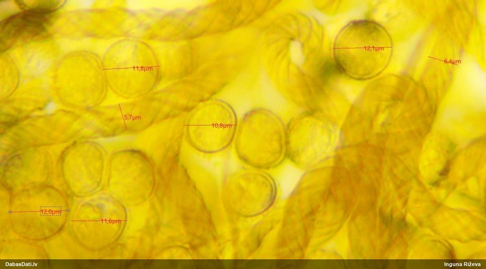 Šis man pašai sanāca pārsteigums. Ievācu paraugu ar domu "varbūt tur ir gļotsēne", dodot varbūtību apmēram pusprocentu, ka ir. Bet no mikroskopijas starp galīgi vecām sporām izdevās atrast ne tikai dažas labas, bet, galvenais, arī perfektus kapilīcija fragmentus, no kura suga, vēl kopā ar sporu pazīmēm, nosakāma nešaubīgi.