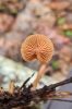 Man pēkšņi radās ideja - vai tur bija nu ļoti mitrs mikroklimats, egle ar melnalksni? Hipotētiski tādas dzeltenas var būt Diachea muscorum. Te bilde ir mazliet līdzīga: https://fr.wikipedia.org/wiki/Fichier:Craterium_muscorum,_Trawscoed,_North_Wales,_Aug_2016_-_Flickr_-_janetgraham84.jpg