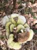 Satrūdējusi kritala mežā, nav dēļi. Iespējams, egle, jauktu koku mežs.