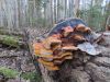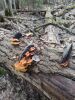 Satrūdējusi kritala mežā, nav dēļi. Iespējams, egle, jauktu koku mežs.