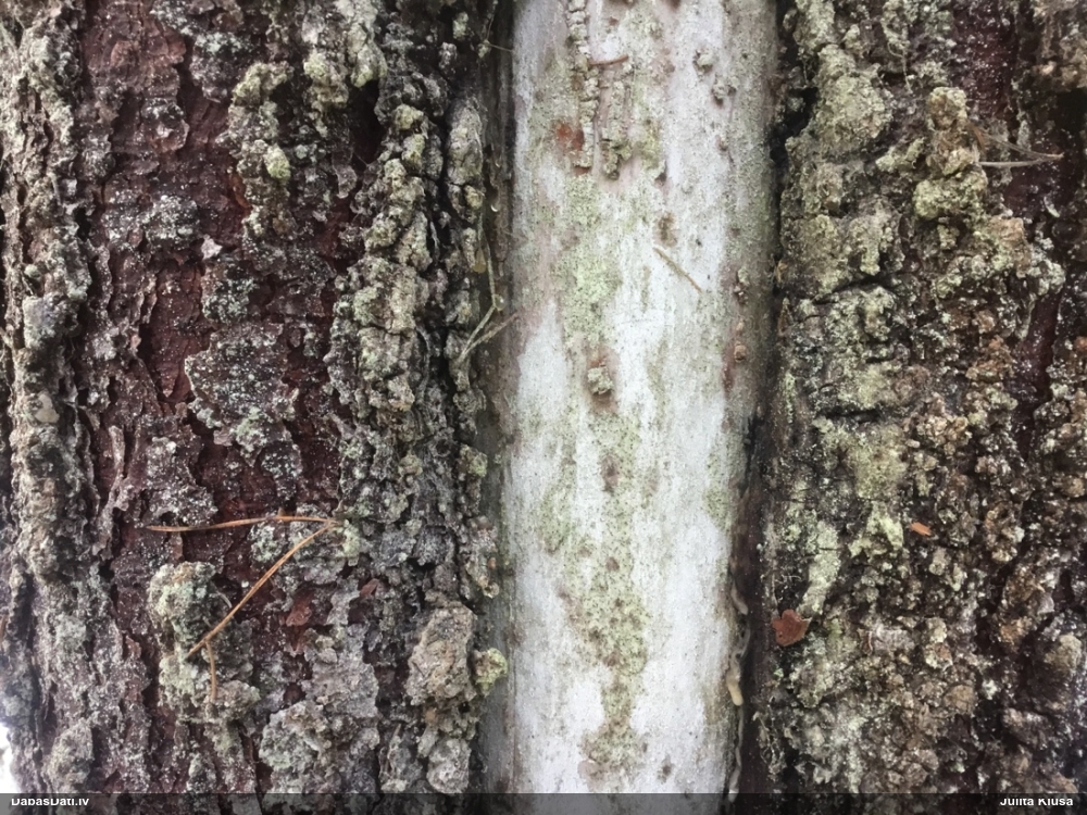 Raivo, nebūs Chaenotheca furfuracea, bet gan C.brachypoda (dabisku mežu indikatorsuga). C.furfuracea ir ar izteiktu laponi, daudz lielāki aķ un košāk zaļa krāsa