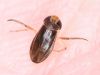 Jāredz tuvāk (kaut vai izkadrēts šis pats attēls) - varbūt tumšā eļļasvabole (Meloe proscarabaeus)