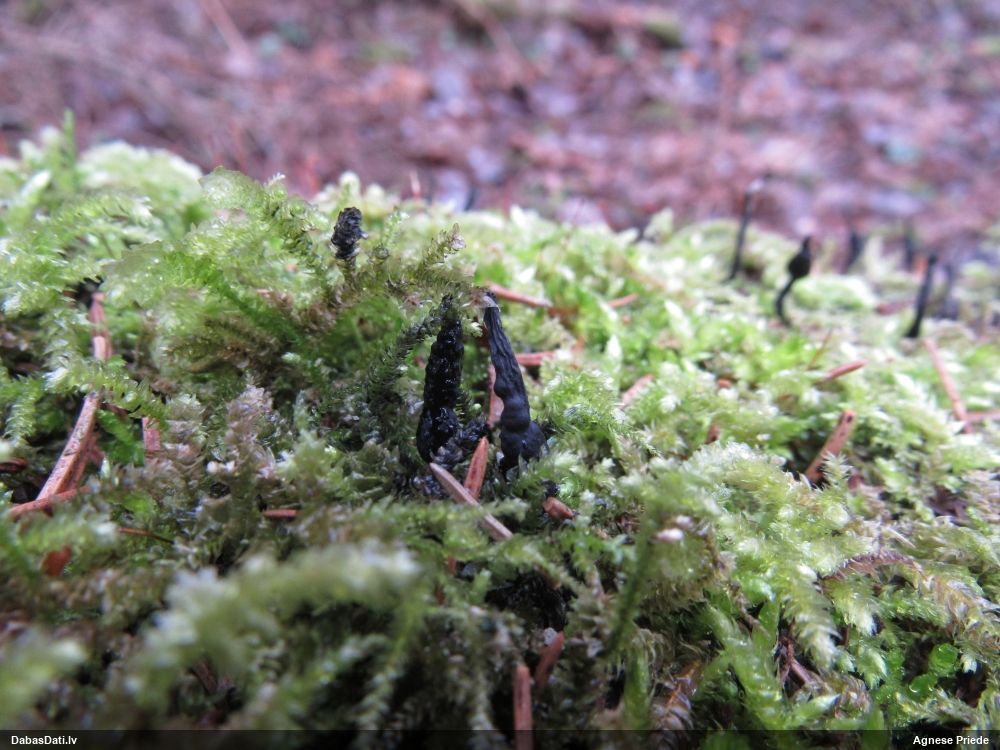 Vai tik nebūs medainā bumbulīte? Augļķermeņi vertikāli izstiepti, sporu mākonis ciešā klājienā.