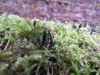 Man pēkšņi radās ideja - vai tur bija nu ļoti mitrs mikroklimats, egle ar melnalksni? Hipotētiski tādas dzeltenas var būt Diachea muscorum. Te bilde ir mazliet līdzīga: https://fr.wikipedia.org/wiki/Fichier:Craterium_muscorum,_Trawscoed,_North_Wales,_Aug_2016_-_Flickr_-_janetgraham84.jpg