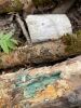 Satrūdējusi kritala mežā, nav dēļi. Iespējams, egle, jauktu koku mežs.