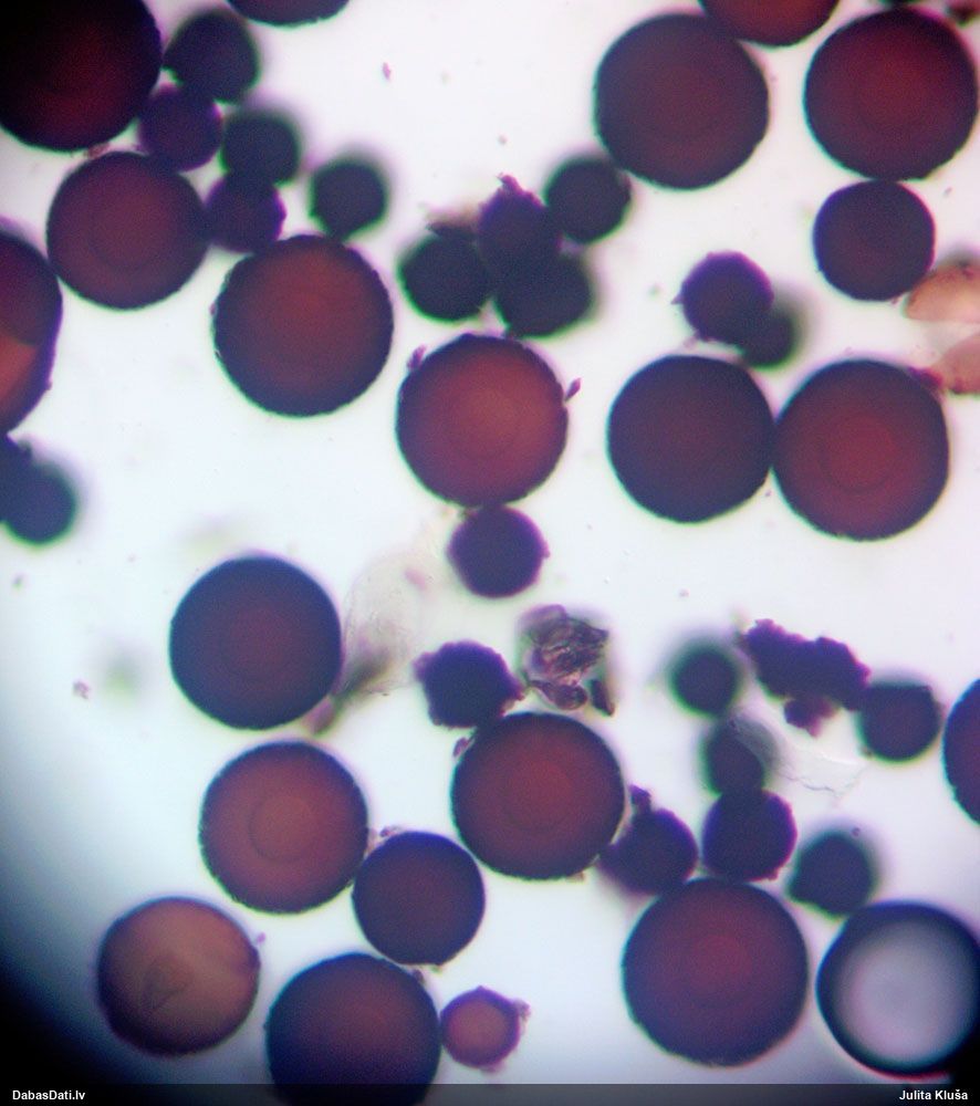 Šis man pašai sanāca pārsteigums. Ievācu paraugu ar domu "varbūt tur ir gļotsēne", dodot varbūtību apmēram pusprocentu, ka ir. Bet no mikroskopijas starp galīgi vecām sporām izdevās atrast ne tikai dažas labas, bet, galvenais, arī perfektus kapilīcija fragmentus, no kura suga, vēl kopā ar sporu pazīmēm, nosakāma nešaubīgi.