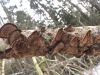 Satrūdējusi kritala mežā, nav dēļi. Iespējams, egle, jauktu koku mežs.