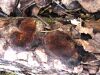 Satrūdējusi kritala mežā, nav dēļi. Iespējams, egle, jauktu koku mežs.