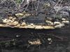 Satrūdējusi kritala mežā, nav dēļi. Iespējams, egle, jauktu koku mežs.