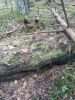 Satrūdējusi kritala mežā, nav dēļi. Iespējams, egle, jauktu koku mežs.