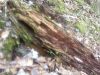 Satrūdējusi kritala mežā, nav dēļi. Iespējams, egle, jauktu koku mežs.