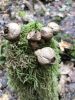 Man pēkšņi radās ideja - vai tur bija nu ļoti mitrs mikroklimats, egle ar melnalksni? Hipotētiski tādas dzeltenas var būt Diachea muscorum. Te bilde ir mazliet līdzīga: https://fr.wikipedia.org/wiki/Fichier:Craterium_muscorum,_Trawscoed,_North_Wales,_Aug_2016_-_Flickr_-_janetgraham84.jpg