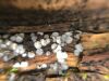 Šobrīd varu iedomāties 2 variantus - melnā plaispika Amaurochaete atra vai parastais gļotpūpēdis Reticularia lycoperdon. Pēc izmēra, augšanas laika un augšanas uz apstrādāta koka atbilst abas.