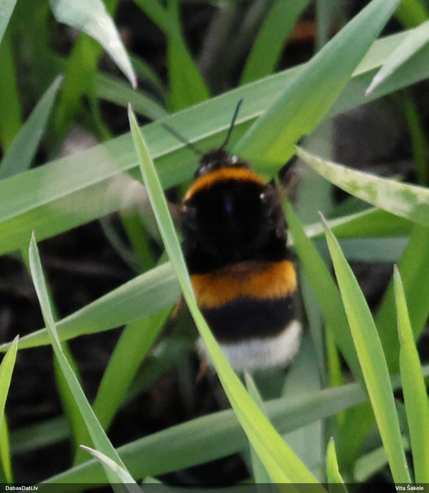 Jāredz tuvāk (kaut vai izkadrēts šis pats attēls) - varbūt tumšā eļļasvabole (Meloe proscarabaeus)