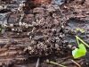 Šis interesants. Uz sausām priedes kritalām rozā mazi līdzīga izskata augļķermeņi maijā aug divām citādi atšķirīgām sugām (dažādās dzimtās) - melnajai plaispikai Amaurochaete atra un trauslajam gļotpūpēdim Reticularia jurana. Pēc sīkām mikropazīmēm (foto nav redzama pat ne sīka balta pakāje ap augļķermeni, un uz virsmas ar lielu piepūli var ja ne saskatīt, tad iztēloties tīklotu virsmas rakstu) izšķīros par biežāko no abām - melno plaispiku, kas tipiski aug samērā atklātās, skrajās vietās, t.sk. nesenos izcirtumos.