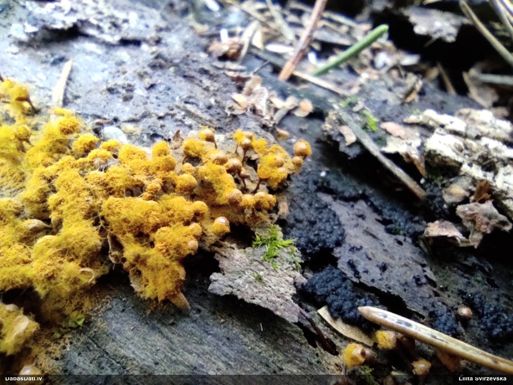Šobrīd divas versijas - Physarum psittacinum un P.braunianum. Bez paraudziņa te skaidrīzā netiks, bet biotops interesants